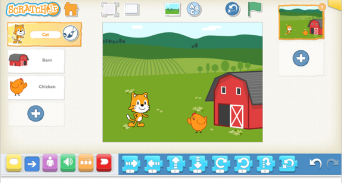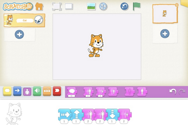 ScratchJr is an app created by MIT which includes user-friendly functions and allows students to code simply by the drag-and-drop function.